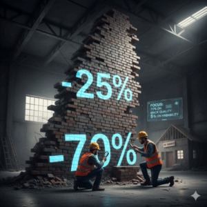 C’est un peu comme si, pour construire une maison, on nous disait de passer 70% de notre temps à vérifier la qualité de chaque vis et clou individuellement, 25% à s'assurer que les murs tiennent, et 5% à vérifier si la maison est habitable.