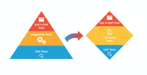 La pyramide se transforme alors en une nouvelle forme, souvent appelée le Diamant de Tests (Test Diamond) :